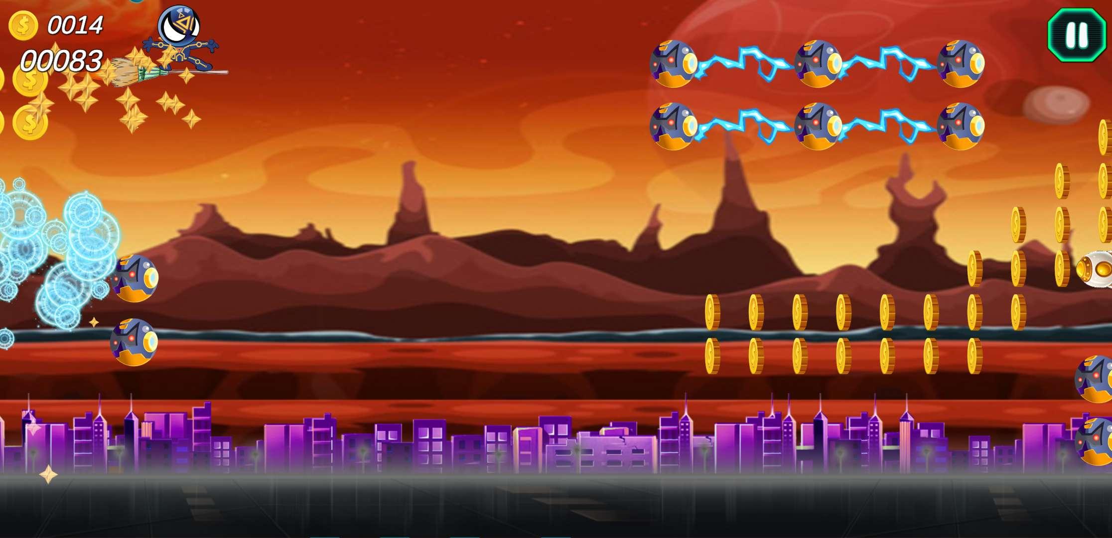 1、采用像素画风,触动屏幕上的操控键来控制主角飞行;