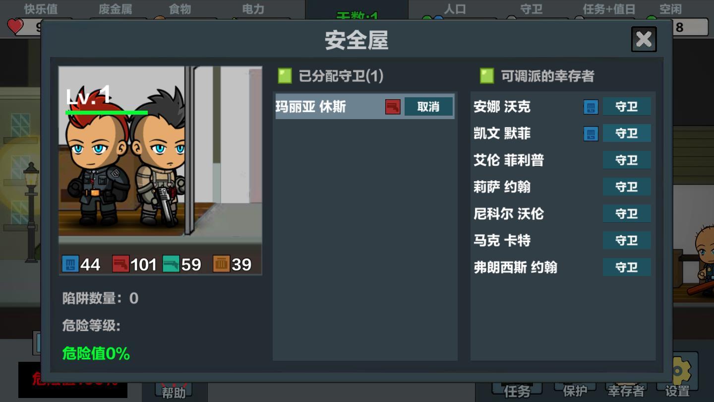 按照能力分派不同的任务,警戒抵御僵尸的进攻;
