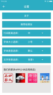支持兰亭,宋体,楷体,新硬楷与系统五种字体,支持五种字体尺寸,支持五种文字显示背景,阅读视觉体验很好。