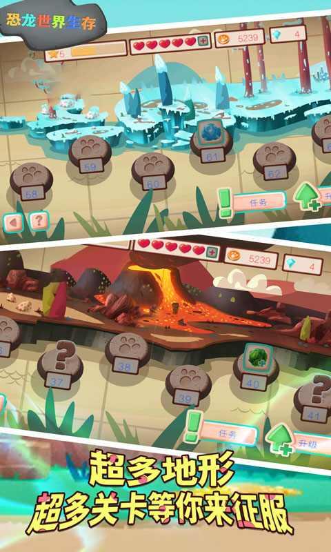 2、可以通过养成方式去将小恐龙不断的合成解锁更高等级;