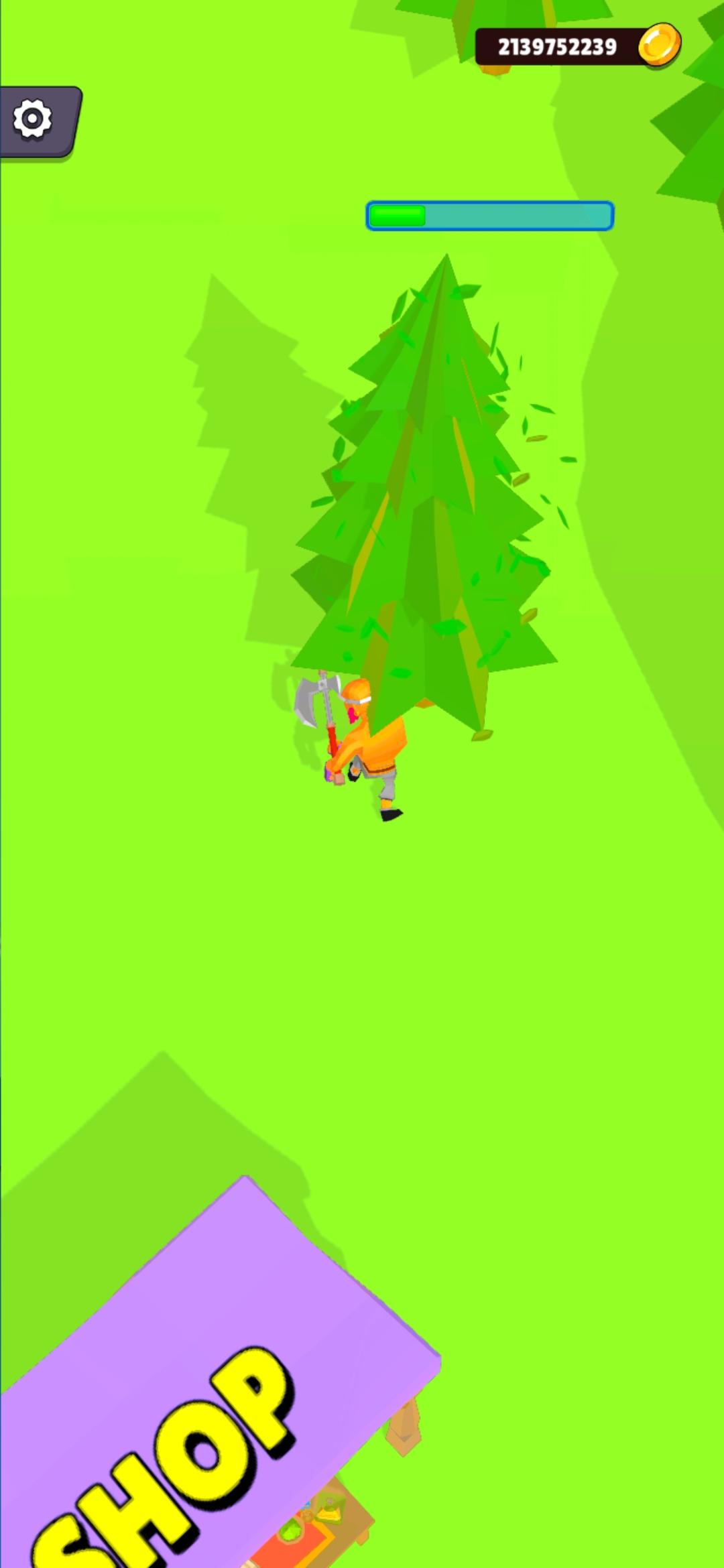2、通过砍伐树木来赚取更多的金币,利用金币就能升级你的员工,提升他们的砍树效率。