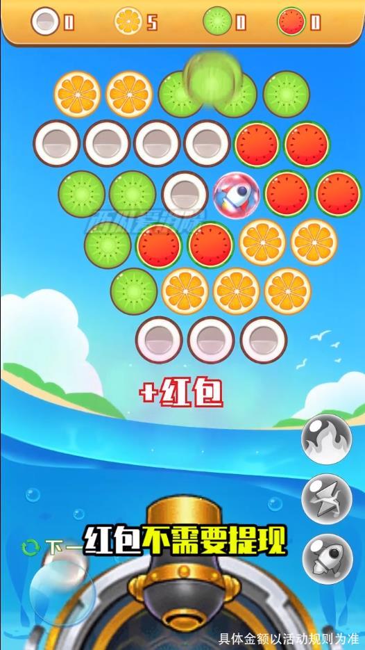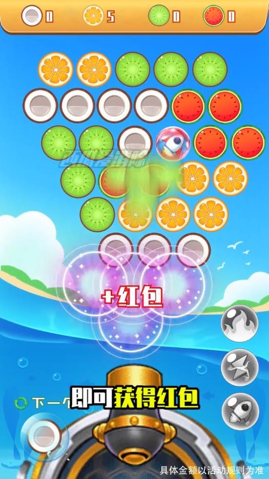 通过合成西瓜让它等级和形状边的更大,售卖即可获得相应的红包福利。