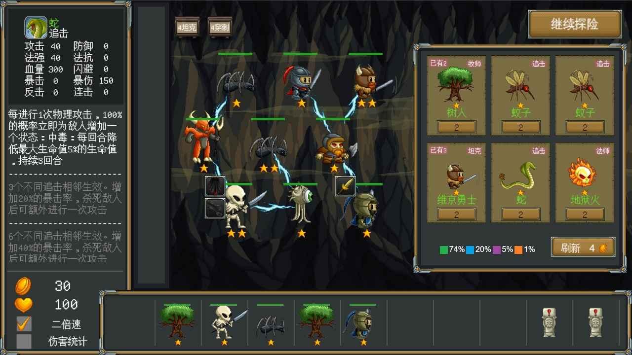再苟一步手游是一款回合制自走棋+rougelike游戏,俗话说麻雀虽小五脏俱全,别看游戏的体积不大,但是它的玩法确实非常丰富,集roguelike、探险、自走棋、回合制、策略等玩法于一身,在这里你可以使用不同的角色和英雄来进行战斗,带你感受全新的地牢探险玩法。