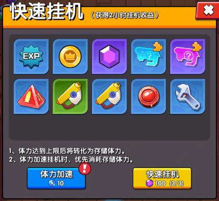而且各位体力有剩余的小伙伴,还可以选择用存储的体力来进行快速挂机,每天系统都会赠送一定次数的免费无消耗快速挂机,用完之后就需要消耗宝石了。但是如果你有体力的话就可以选择用体力换取体力加速,享受一样的快速挂机效果。