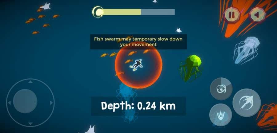 潜入无尽的生存之旅,探索沉浸式的未知海洋。只有你和你的生存意志。使用您的特殊技能摆脱饥饿的掠食者。深水是一个危险的地方,有时大多数美丽多彩的生物可能是致命的,不要被这些类型的水母所欺骗,它们也可能变得不可见!尝试预测您的每一个动作。尽管神秘海域是一个充满挑战的生存之地,但仍有许多生物可以帮助您渡过难关。如果发现白色水母,请尝试抓住它,它将为您提供所有捕食者的氧气和庇护所。