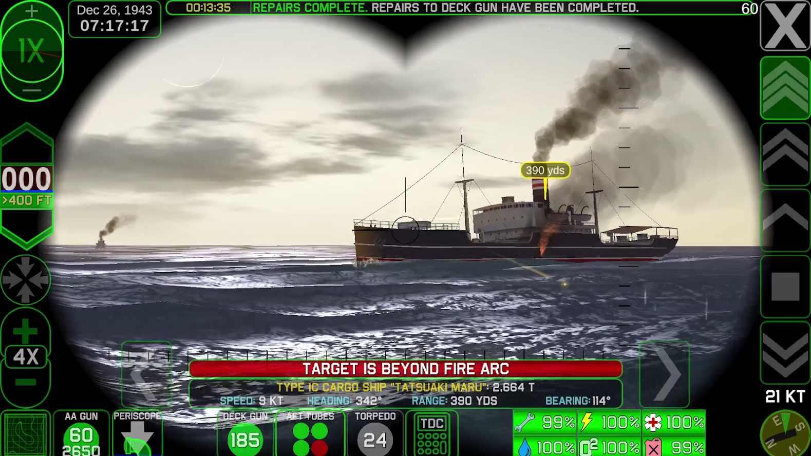 2、潜入驱逐舰并用鱼雷击中运输船,或与副驱逐舰进行激烈的炮击战;