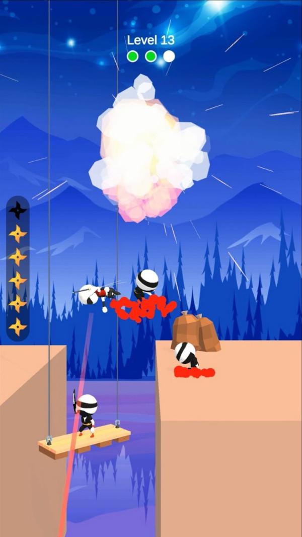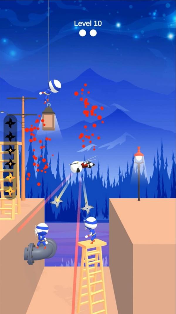 强尼忍者游戏中您将成为一名英雄,您需要使用手中的飞镖找好合适的角度把前方的敌人击杀掉,注意飞镖的数量有限,您不能浪费,否则您的命运就是被敌人杀死,每个关卡的敌人都不同,难度也会随着等级逐渐提升;