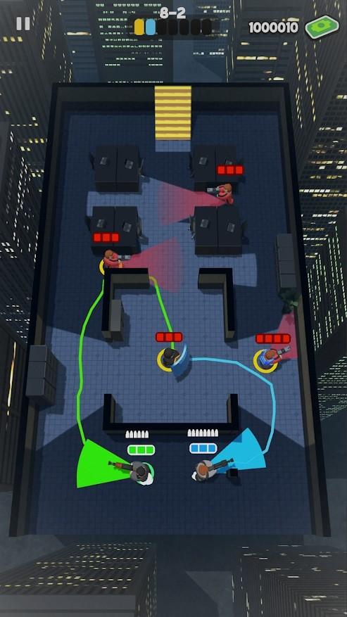 游戏的玩法非常简单,玩家只需要在关卡中通过对敌人的站位去画线规划角色前进的方向,利用智慧躲开敌人的疯狂射击,并在合适的时候给与他们致命的一击就可以获得胜利。