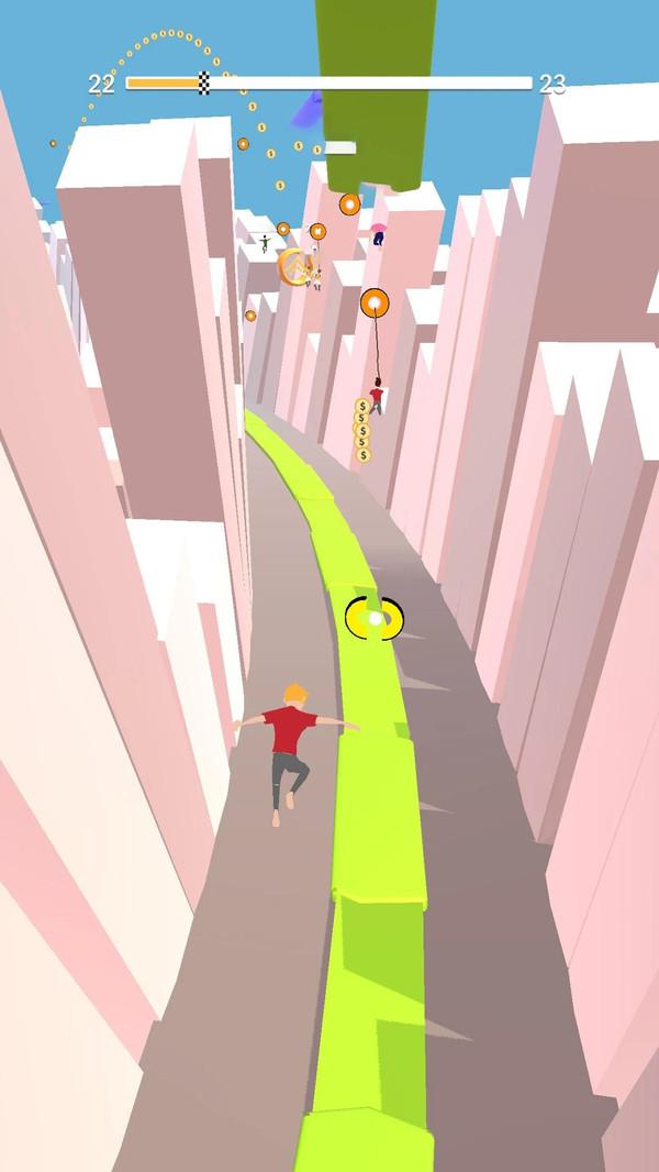 1.流畅的绳跑酷玩法,极其有趣灵敏的操作,快速避开各种障碍。