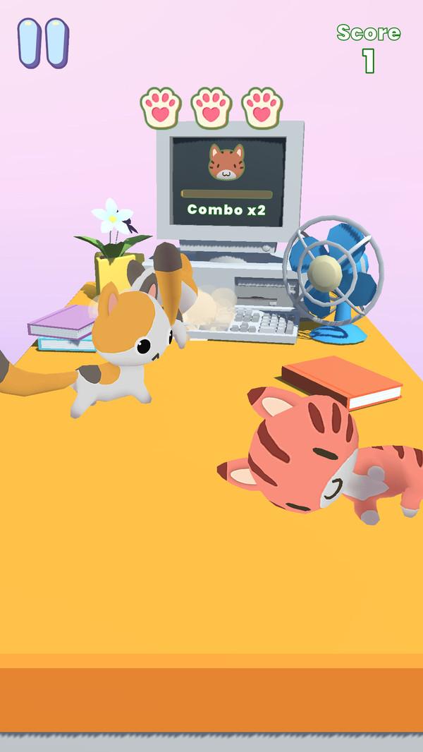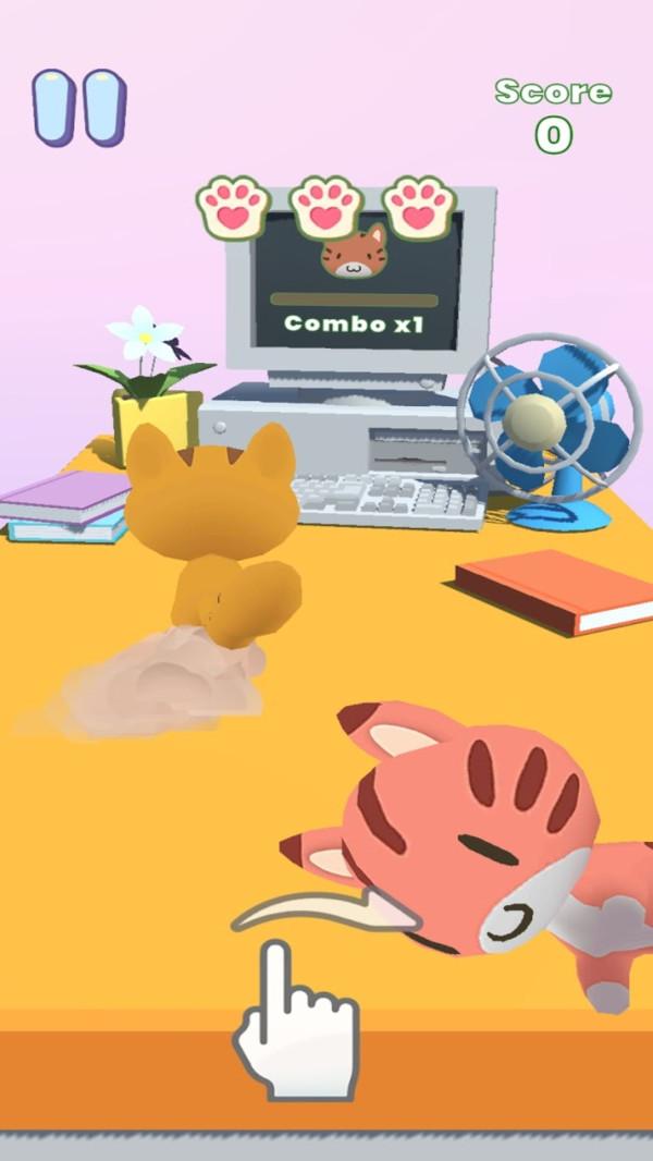 噢我的喵是一款休闲放松类的小游戏,你养了很多的小猫咪,小猫咪都喜欢在忙碌的时候特别粘人,在你的面前捣乱,需要把它们赶下去才能好好工作,去逗逗可爱的小猫咪吧,想办法把它们弄下桌子,毕竟赚了钱才能更好的饲养它们。