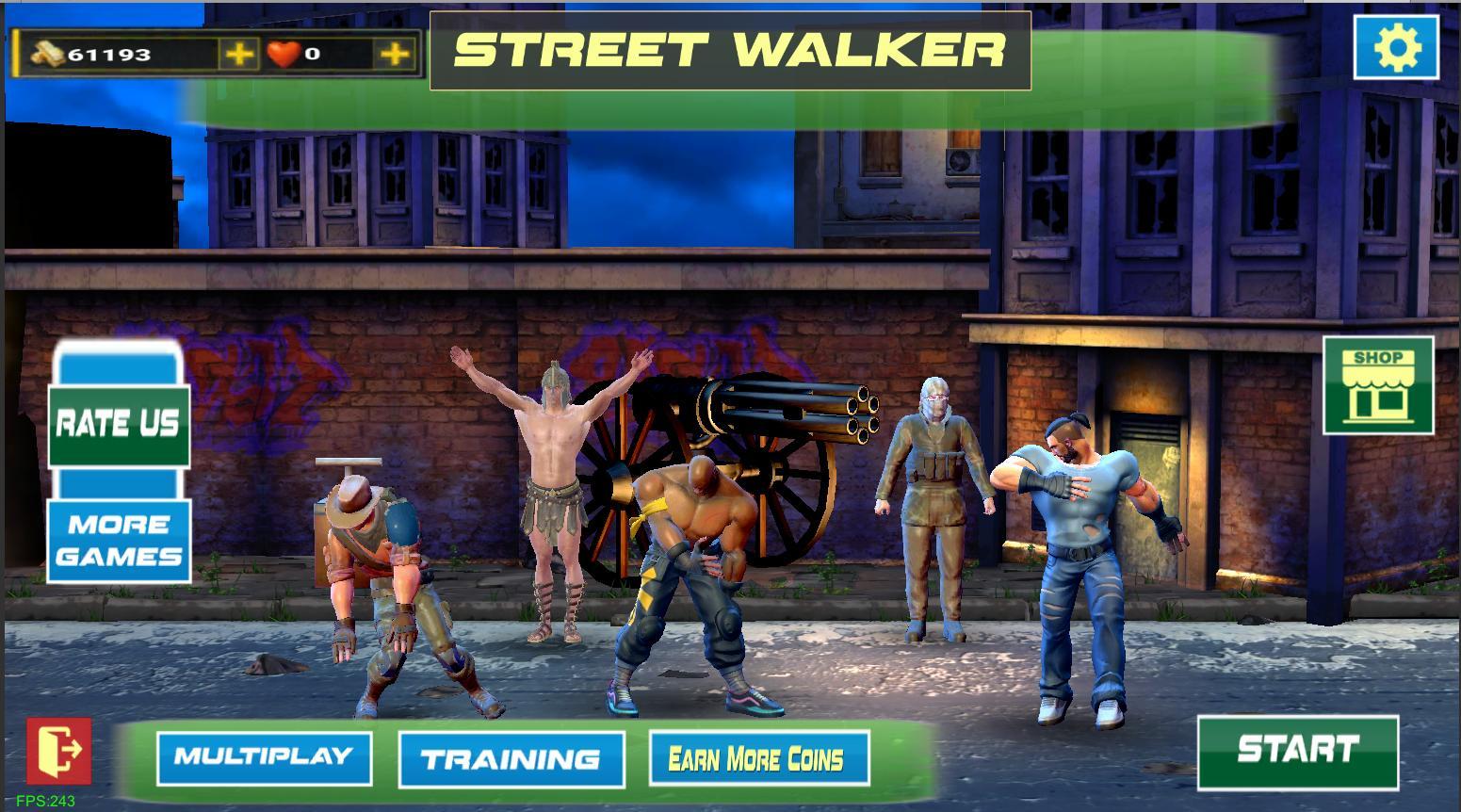 街头漫步者是一款动作街机类的游戏,在角色中挑选自己喜欢人物,开启闯关挑战,会出现多个人物或者怪物,搞定他们,即可获得最终的胜利,本版本在进入游戏时赠送大量货币,快来下载解锁更多的角色吧。