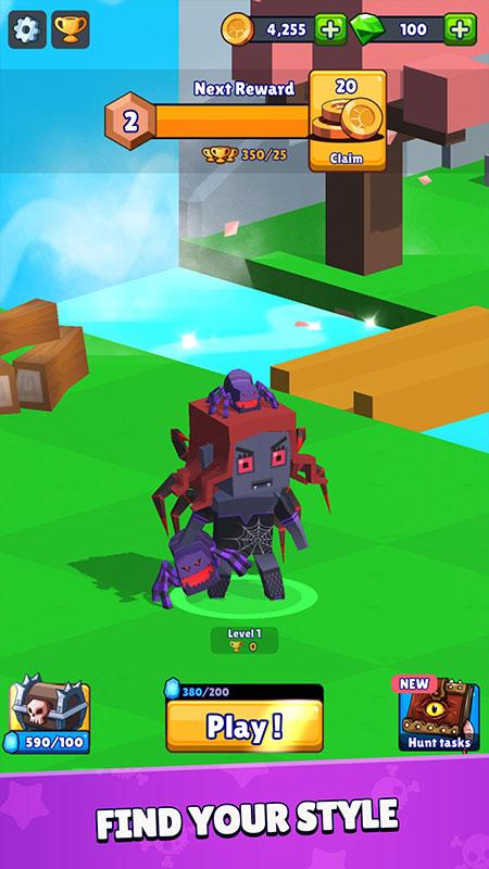 1、狩猎挑战提高英雄的能力,武器升级提高超强的属性,继续去搞定一切的敌人,发挥出巨大的威力。