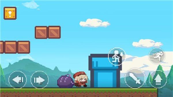 像素风格的绘画充满了场景内容,人物按照经典的玩法进行控制。