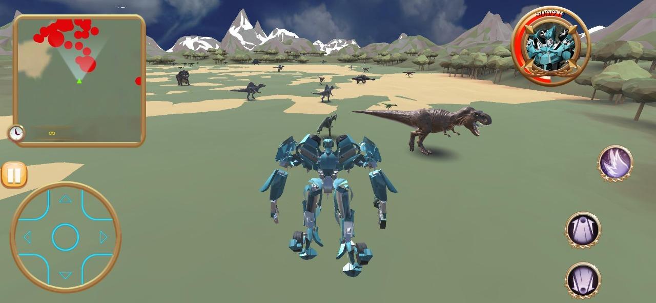 机甲战场是一款动作冒险游戏,玩家将要控制自己的机甲进入恐龙的世界中,与恐龙进行对战,消灭恐龙生存下来,您需要将技能发挥到极致才能赢得胜利,各种不同的恐龙等待您前去挑战,还能够解锁不同的机甲来体验这款游戏;