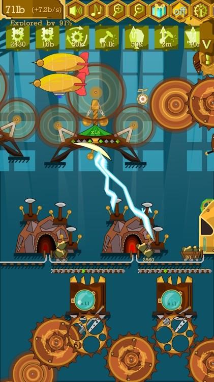当你旋转齿轮时,你会产生硬币,赚钱来升级它,并购买更多的齿轮和齿轮,如发动机、泵、锤子或卡车。