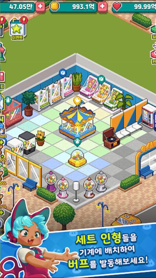 夹娃娃大亨是一款像素风格的经营游戏,玩具将经营着一家夹娃娃点,您需要收集许多的娃娃放在机器中,让更多的客人前来抓娃娃,并激活娃娃buff,这样您就能赚取非常多的收益,从而发展夹娃娃店,最终您的收益就会越来越多;