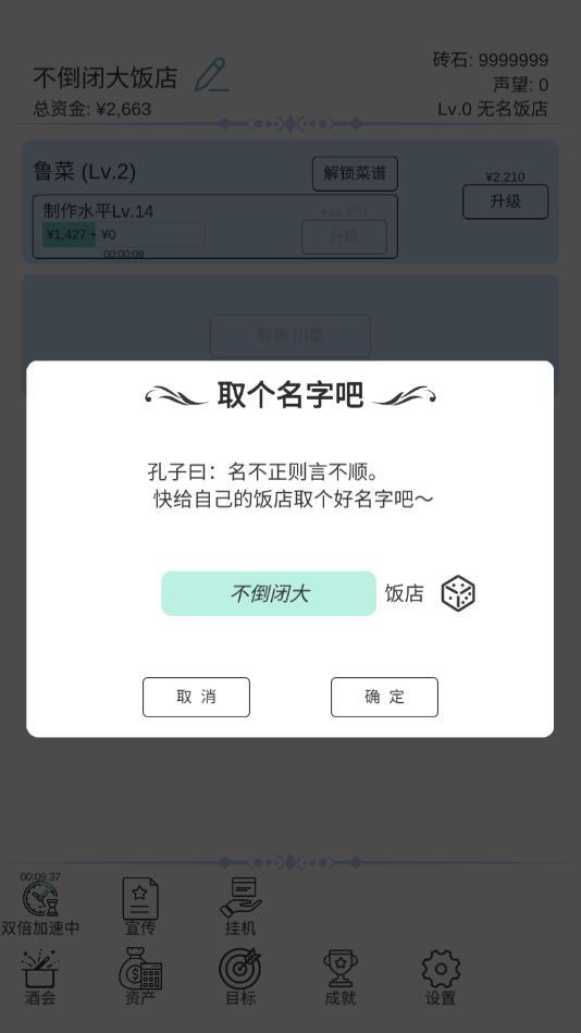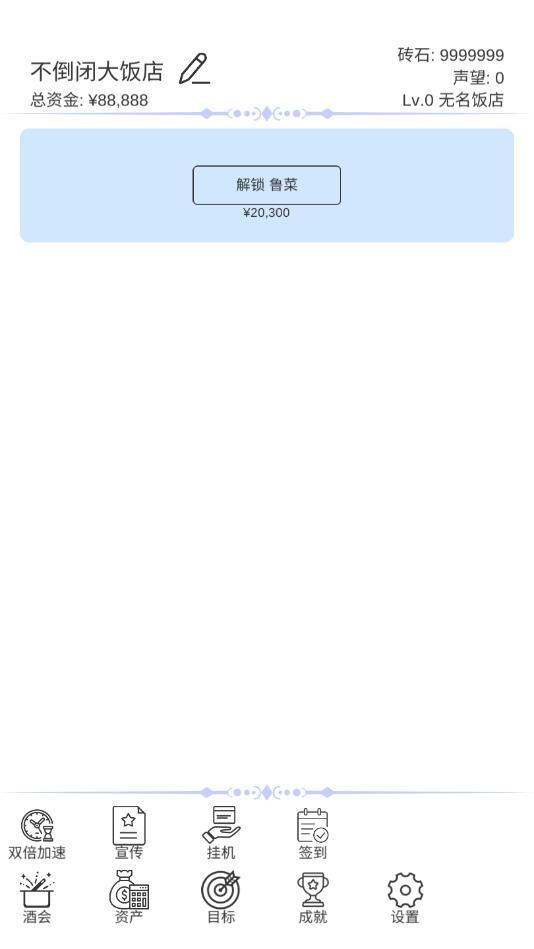 我赚钱超快游戏给玩家破解成进入游戏获得大量的砖石,而且还能免广告获得奖励,这是一款文字模拟游戏,玩家将模拟开饭店,您需要要解锁各种菜系,并学习制作菜谱,让您的饭店越来越受欢迎,后面您会越来越富有,跑车房子都能买上;
