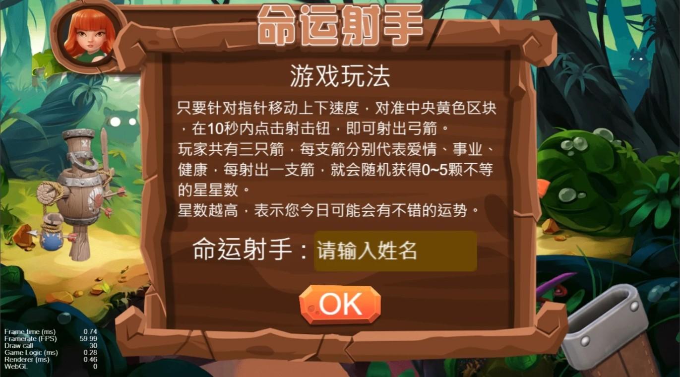 只要针对指针移动上下速度·对准中央黄色区块在10秒内点击射击钮·即可射出弓箭玩家共有三只箭·每支箭分别代表爱情丶事业健康·每射出一支箭·就会随机获得0~5颗不等的星星数。