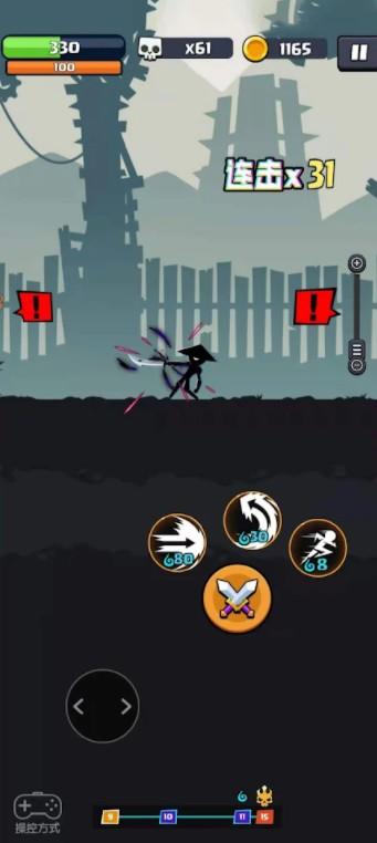 一款经典的火柴人系列格斗类动作手游,游戏的玩法非常简单,玩家选择自己喜欢的角色进行技能升级,然后打败各种怪物就可以了。