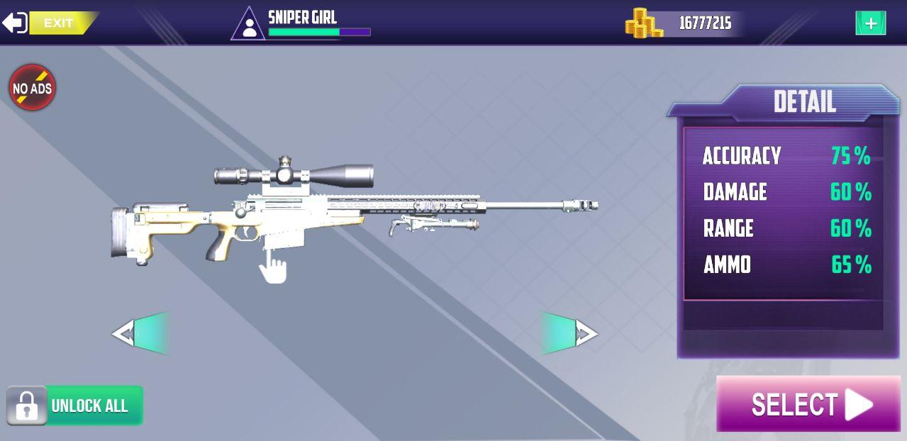 狙击少女2021无限金币版是一款非常刺激的画质精美的3d射击狙击游戏,游戏游戏中拥有大量的游戏场景城市、荒野、废墟、工厂、海边、学校等等,各种场景可以让玩家进行体验,同时游戏中还拥有各种非常先进的枪械,完成任可以解锁更强的武器。