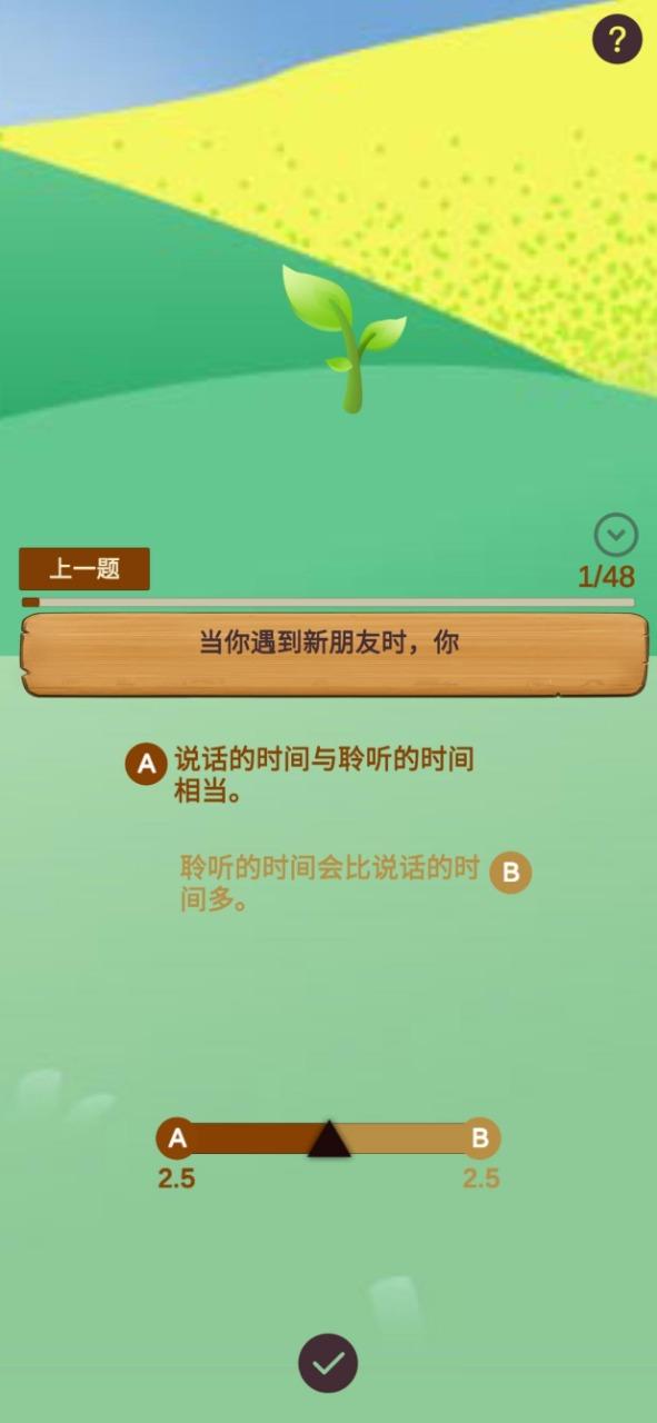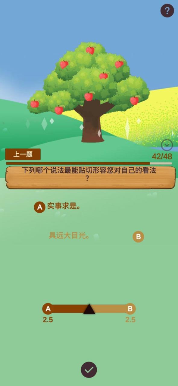 这是一个心理测试游戏,可以帮你了解你自己的性格并且给你贴心的建议。
