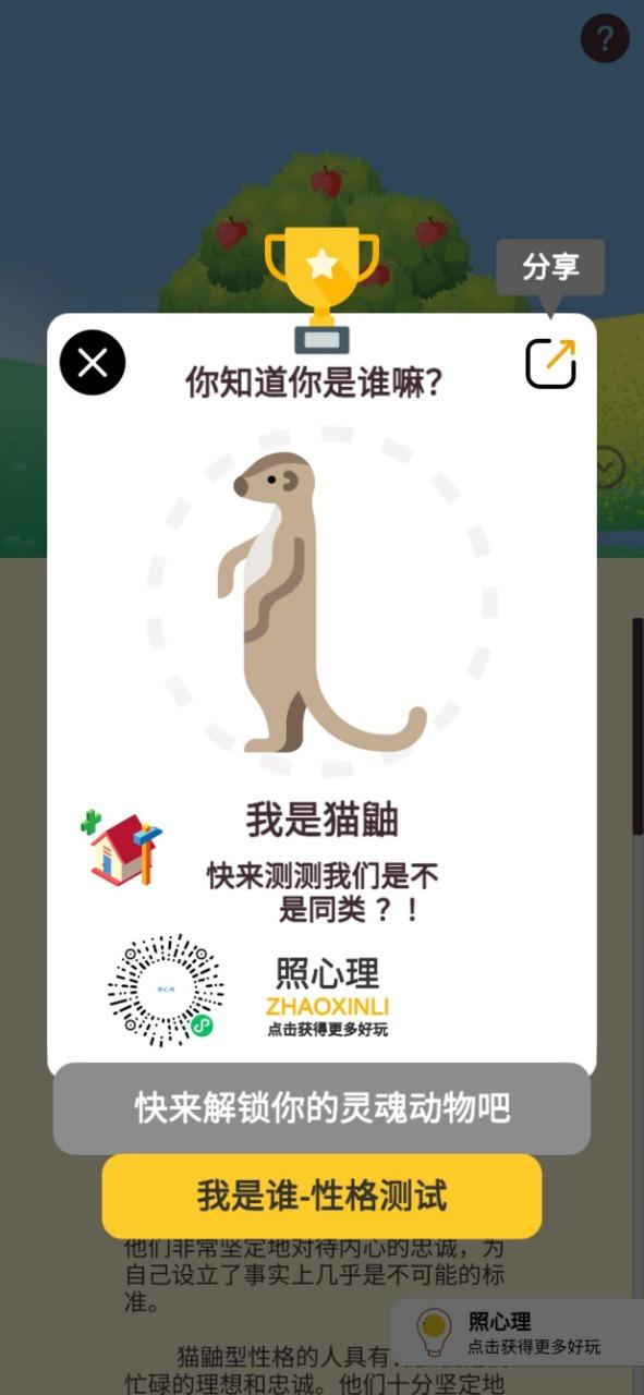 你只需要做几十题就可以获得自己的性格报告并且解锁自己的性格代表神兽。
