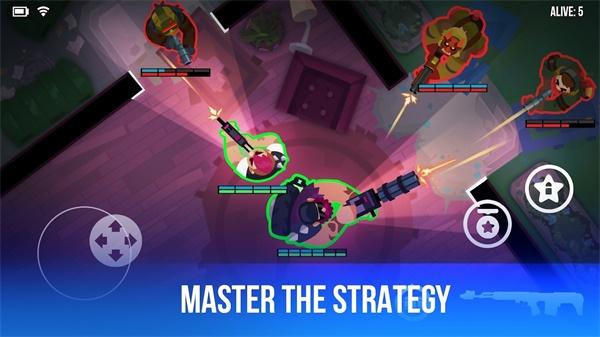 1、享受最快节奏的枪战对抗,解锁数十位不同的角色,享受俯视角枪战乐趣;