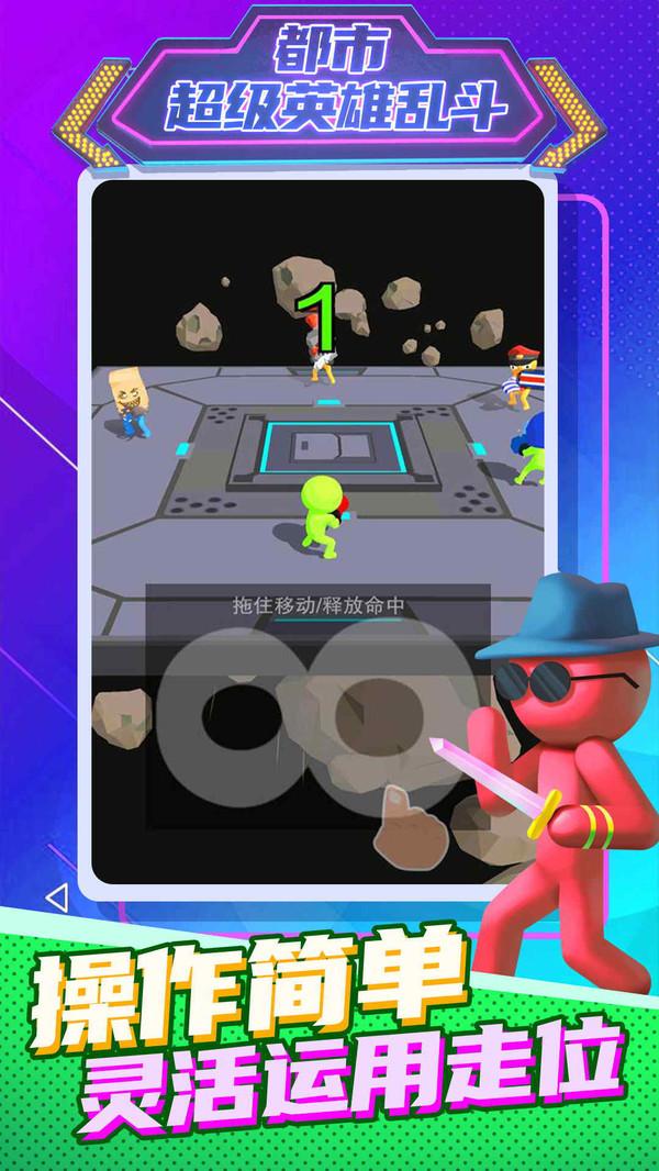 都市超级英雄乱斗手游是一款非常有趣刺激对战类手机小游戏。在这款游戏中玩家将体验到全新的游戏模式和内容,操控橡皮游戏角色,不断地通过操作还有走位打击道具等等你能用到的方式将其他玩家给弄下擂台最后一个留在场地上就是最后的胜利者。