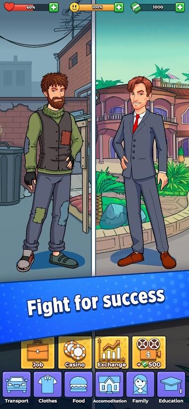 开始您的第一份工作,并节省在Clicker游戏中经营自己的闲置业务的费用。尝试不同的工作,计划您的经济商业游戏策略,最终发展一个闲置的金融帝国。走上街头致富,成为亿万富翁大亨,并证明无家可归者也能发家致富!争取进入商业世界的途径,通过在股票市场赚钱获得额外的闲置收入,并在赌场游戏中中奖。每天的生活变得越来越富有。尽力成为无家可归的乞丐,抓住机会,成为财富中最富有的人。