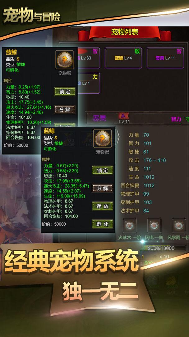 1、宠物的能力有无限的成长空间,也是你战斗的最好帮手,把它们的潜力都激发出来。