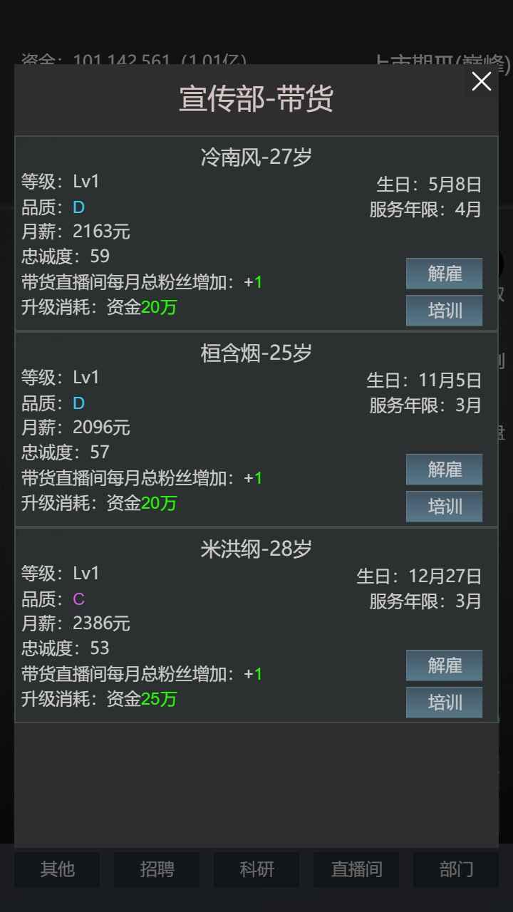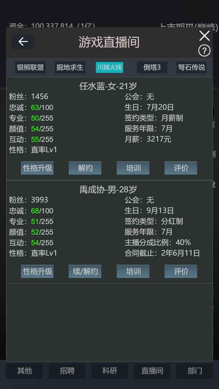 需要你签约不同类型的主播,不同的主播职业,性格等很多因素都不一样,所以主播的搭配管理需要你来控制,从而得到最大化的收益