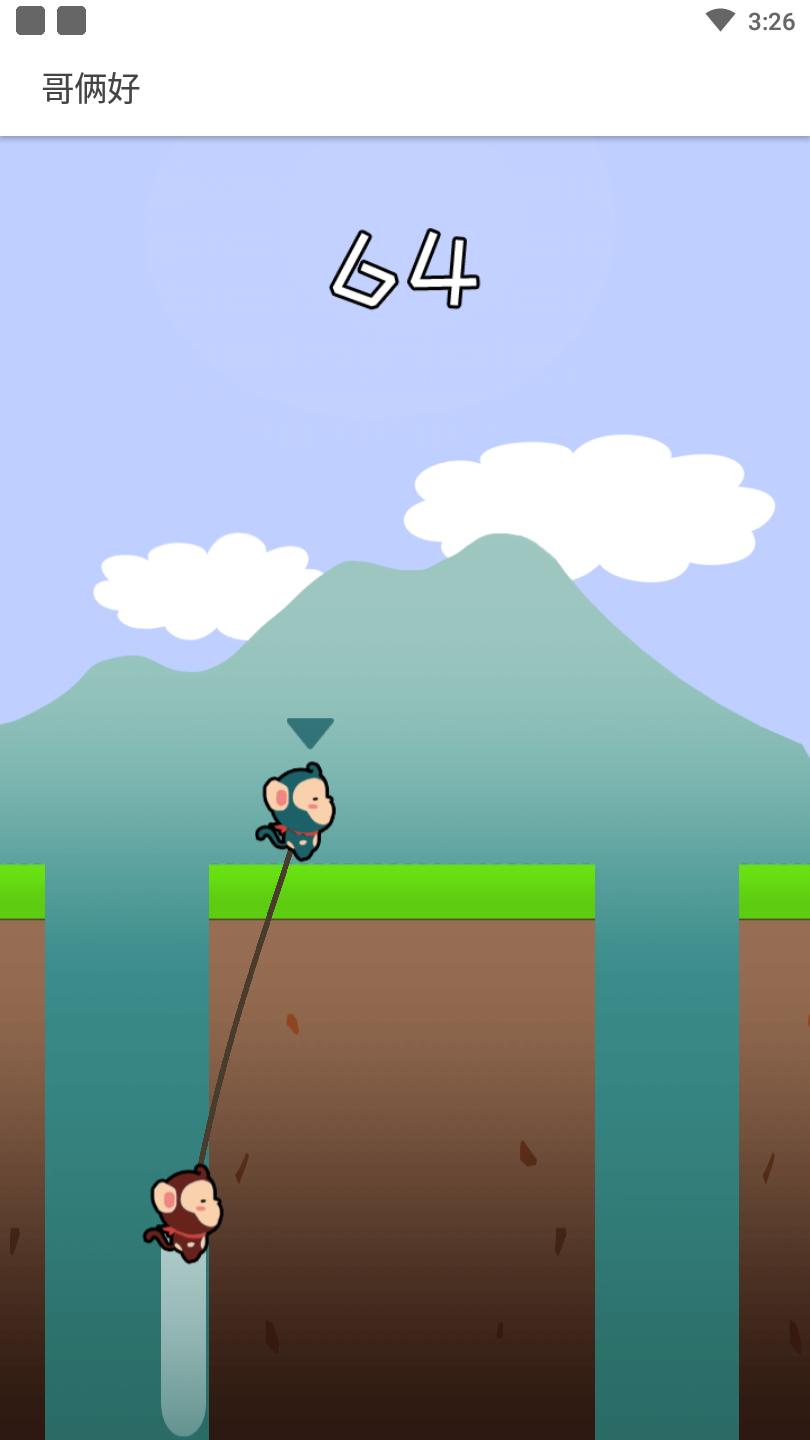哥俩好小游戏猴子最新版还是由我们的召唤神龙的开发者制作的小游戏,简单的游戏玩法,我们每次都会控制一个小猴子往前面跳去,每一次都是交替进行的,长按的时间长短与跳跃高低距离都有很大的关系,当然只要有一个猴子遇到困难那么游戏就结束了,一定要保持好距离和分寸!