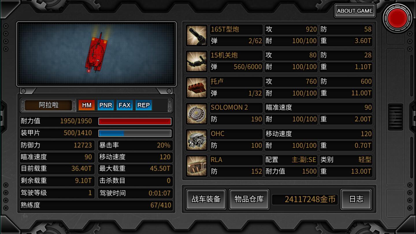 这不是红狼战车吗。还记得当年卡bug,再找第二个修理工的时候他要上坦克,在他开坦克瞬间上下车,就变成两辆坦克。然后把复制出的那辆坦克里的炮弹卖了,我就刷了几百万G,用也用不完。重装机兵当年传言明奇博士才是大boss 和诺亚合体。其实是假的。军号无敌,装挡板可以让大象把自己撞死。还有隐藏物品v6发动机,用雷达扫描器扫描。而且我记得机器狗来抓你的时候,距离一定范围内用雷达扫描器,然后瞬间整个游戏就静止了。不遇敌,还可以穿墙,想去哪就去哪。然后去打异形,就可以解除。(打死了就没用了)还有医药箱,给自己的角色后面用,角色的血就变十几万了。把坦克弄的超重,然后吃金属片,坦克的血也能变几万。还有后期,收集眼镜片,那把武器可以有不同的组合,伤害最高的就是单体的激光。还有赏金boss的神秘人很难遇到,我第一次玩就遇到了神秘人,打铁弹然后把它干掉了。还有雷电花,刷它会有一定几率掉一个人物工具,可以召唤卫星攻击。还有用时空传送,有很小的几率会传送错误,然后到一个废弃研究所,那里有再生丸。