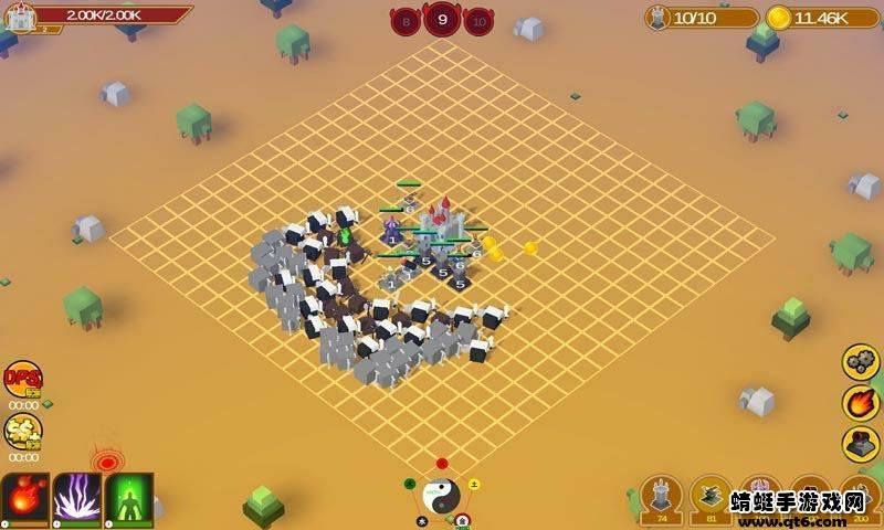 1、游戏中玩家需要参照五行相生相克的关系,组建自己的防守阵容。