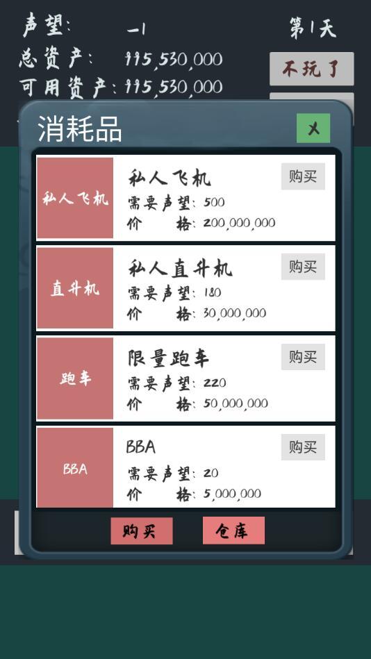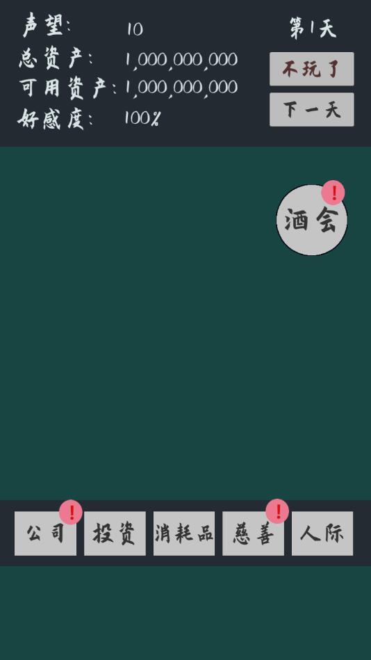 当您有了十个亿要怎么花?在败它个十亿这款游戏中,玩家就有了十个亿的财富,您需要在一个月内想办法把钱全部的花掉,游戏中玩家可以通过做慈善提升自己声望,发展各种各样的剧情,还能够购买直升机和别墅等,能否继承父亲的财富就看您能不能花完十个亿了;