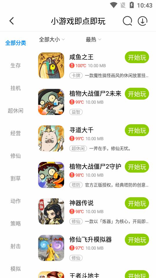 2、这里有着当下最新、最热、新出游戏等不同分类,我们以下载废材武林为例子