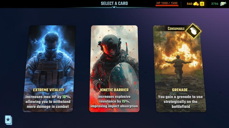 《Gunfire Ops》采用了Roguelike系统,这意味着每个任务都是独一无二的,没有固定的模式可循。遭遇战、敌人类型和事件都是随机生成的,确保了每次游戏都有全新的挑战。这种不可预测性让玩家必须时刻保持警惕,灵活应对各种突发情况。你会在这样的随机挑战中生存下来,还是最终倒下?这完全取决于你的应变能力和决策。