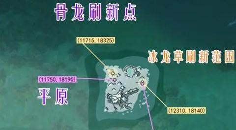 骨龙的周边就会刷珍贵的冰霜龙涎草,采摘后9-15小时在圆圈区域随机刷新。