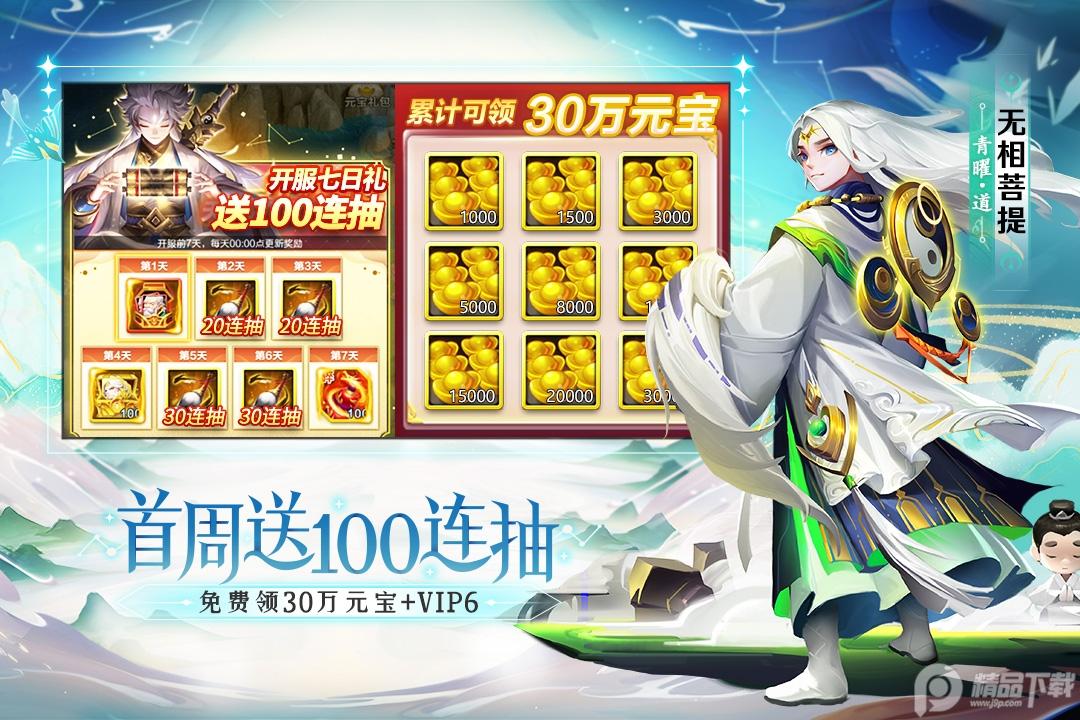 100000元宝免费送,VIP级游戏体验!7日领红卡,月卡13倍返还,装备无损继承,神仙培养资源100%返还,登录送元宝,天天有福利!非RMB玩家推荐,满足一切期待!