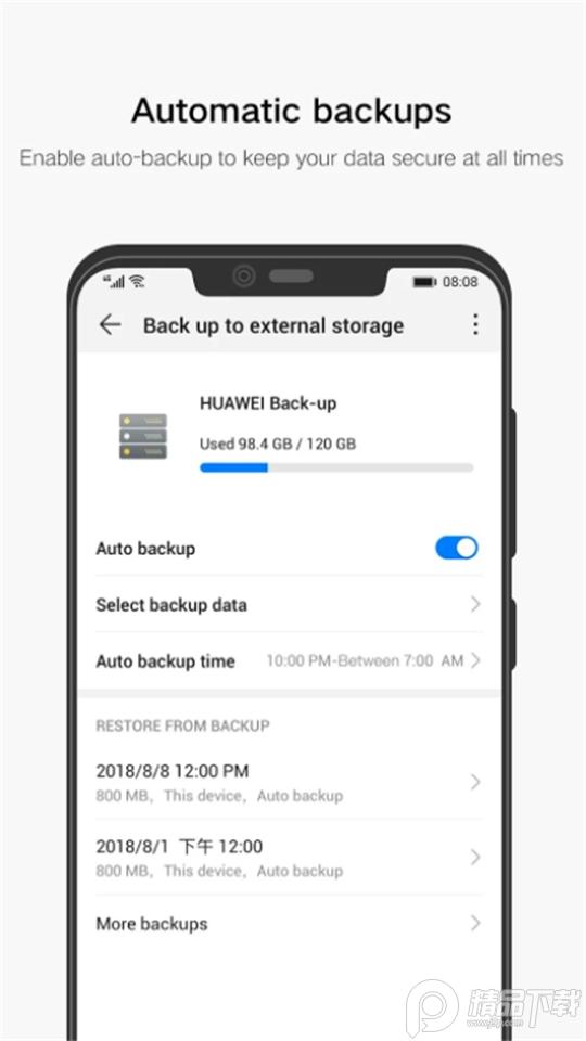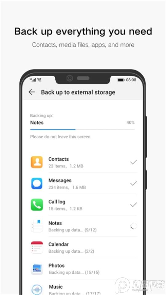 2.是华为推出的一款数据备份软件,软件可以帮助用户一键备份个人数据、应用程序、多媒体数据等,使用简单,功能强大,需要的朋友欢迎前来j9p下载使用。