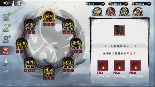 8个部位宝石,每个部位最多可以镶嵌3颗宝石,玩家一共可以镶嵌24颗宝石,宝石最高级为10级