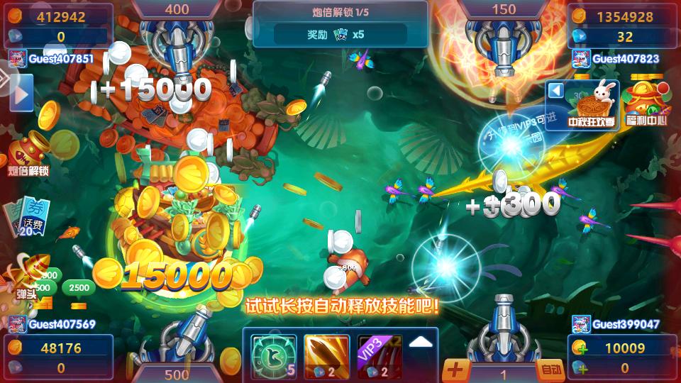 1.操作流:针对什么鱼用什么炮打,这点是非常关键的,毕竟我们要用最少的子弹去打最多的分,这样我们才有得赚;