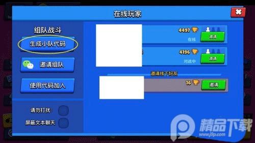 3、如图,小队代码生成后就建立好了小队,然后我们可以在游戏邀请游戏好友加入或复制代码发给微信好友邀请加入
