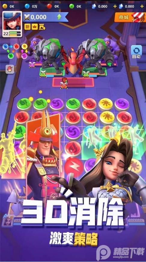 消除+SLG,策略战斗新体验不同于传统的三消手游,全球首款3D消除操作以及三消局内的英雄排兵布阵,领主们可以在消除战场召唤英雄、排兵布阵,策略对抗,享受火拼战场的淋漓快感。更有丰富的社交玩法共探指尖大陆背后隐藏的重重谜团!