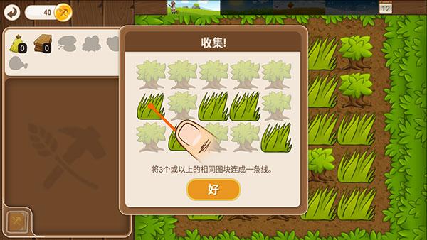 5、在农场中,收集种植物的方法是将3个活以上的相同图块连成一条线;