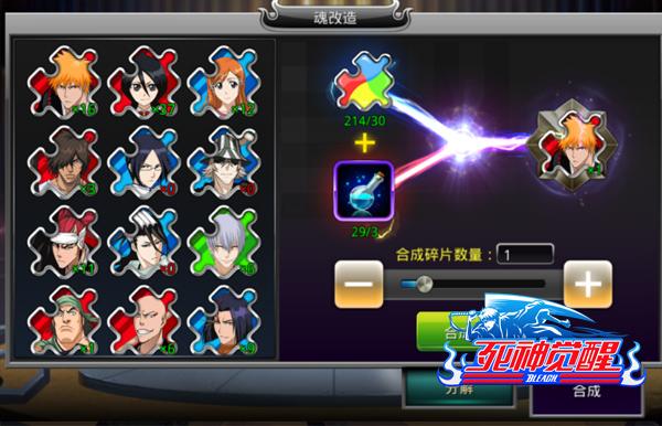 在魂改造系统中,玩家可以将在“记忆之路”中所获得的万能碎片和凝魂合剂转化为任意死神的灵魂碎片,灵魂碎片达到一定数量,即可解锁相应死神,也可以将灵魂碎片分解为万能碎片,一方面减少了资源浪费,另一方面彻底满足了玩家对使用角色的多方需求。