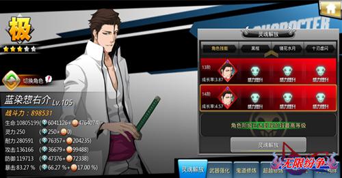 需要注意的则是连招完成后,需要迅速远离对手,以防御动作等待技能冷却和灵力恢复。另外还有很多角色在灵魂试炼中也能有着不错的发挥,比如像具有回复能力的“吉良伊鹤”,超高爆发的“更木剑八”,具有无敌技能的“市丸银”、“松本乱菊”等等。
