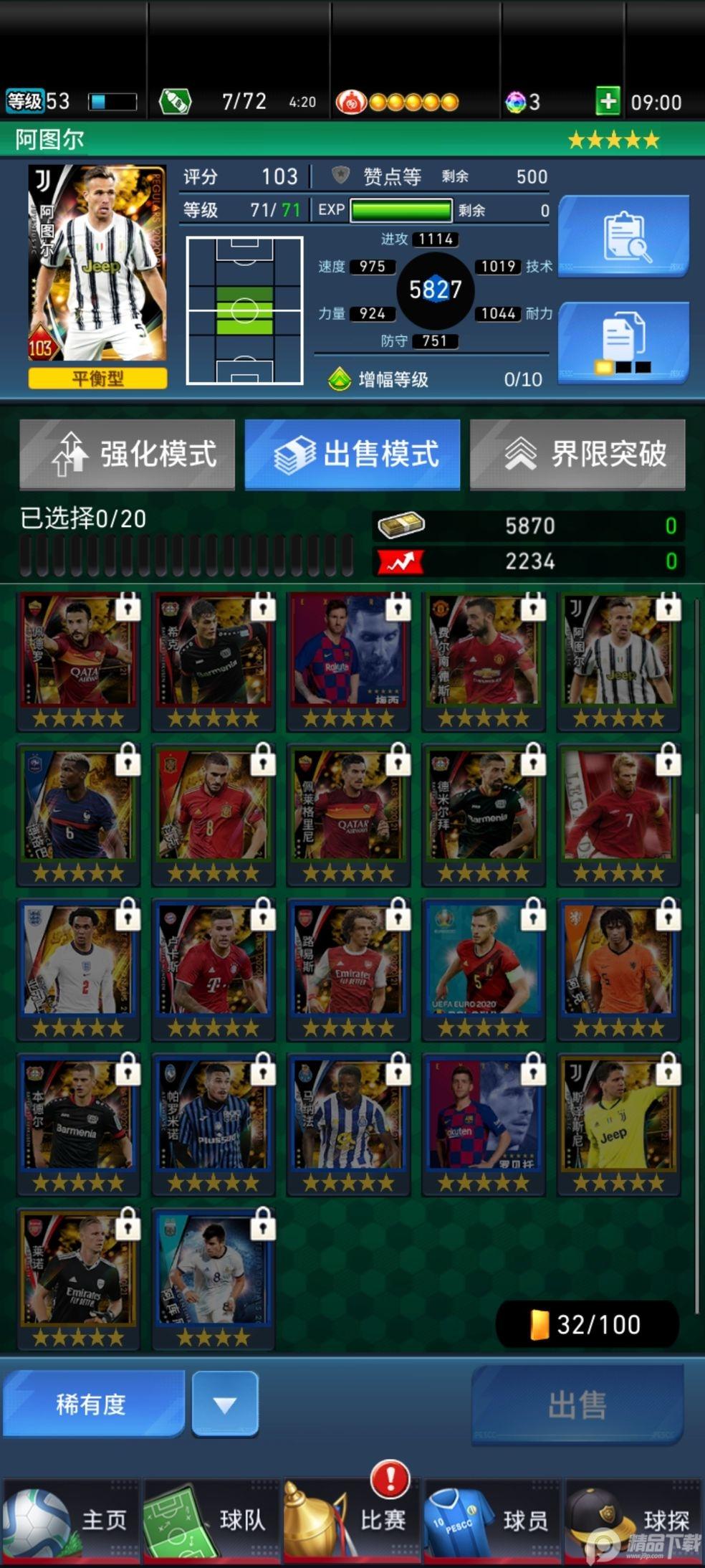 3、玩家拥有了四星级、五星级的球员,还需要通过给他资源进行球技的训练和球员的强化,让他在场上有更强力的表现。