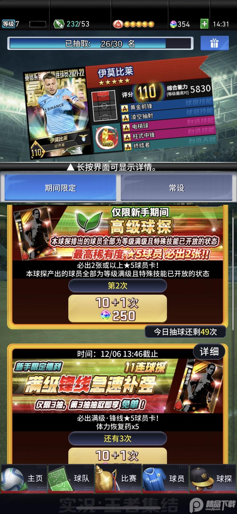 3、球员候选活动-完成任务,获得强力球星助阵