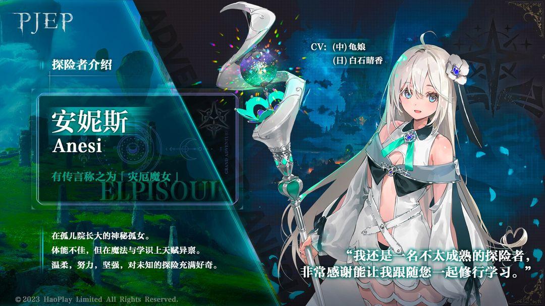 在孤儿院长大的神秘孤女,有传言称之为「灾厄魔女」。体能不佳,但在魔法与学识上天赋异禀。温柔,努力,坚强,对探险永远充满干净的好奇心。